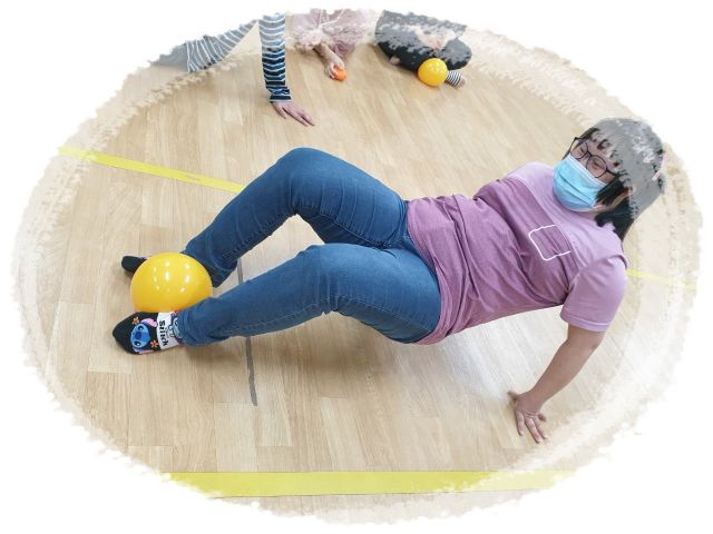 공을 이용해 스트레칭과 평소 사용하지 않는 등 근육 풀기.