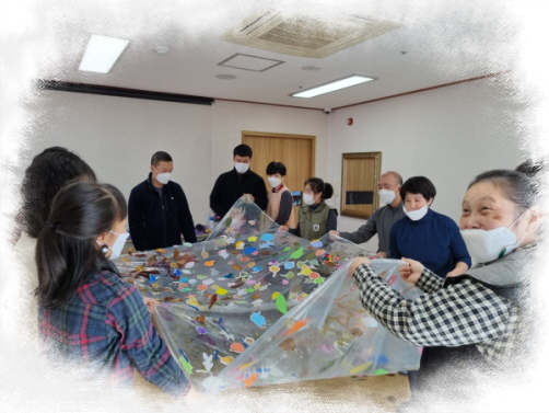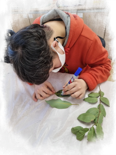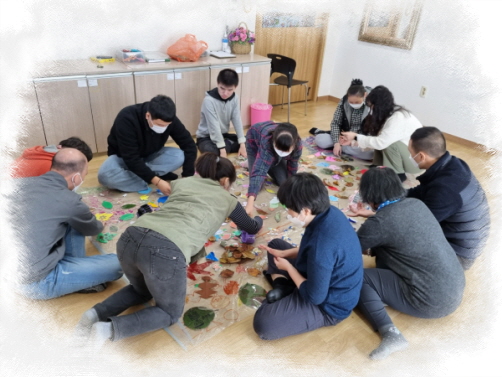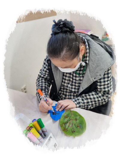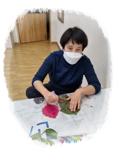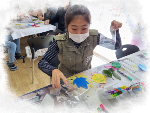 미술활동으로 다양한 단풍잎에 자신의 쓰고 싶은 글이나 그림 등을 그려 손편지 쓰고, 코팅하여 가을길에 붙여보고