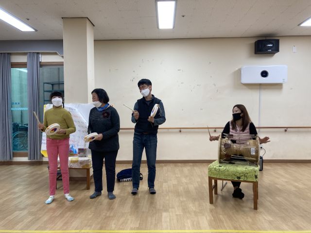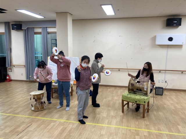 금일 전통놀이활동 시간에는 노래에 맞추어 한삼놀이를 하고 자진모리장단에 맞추어 소고연주를 하였습니다.