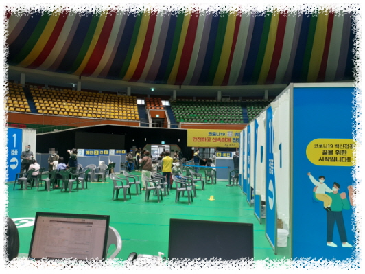 사전 작성한 예진표를 들고 차례대로 발열체크도 척~척~