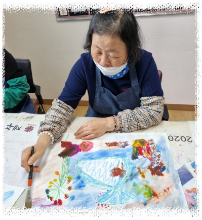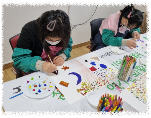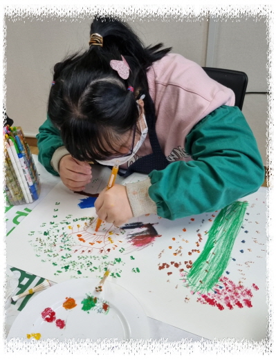 재능키움활동으로 면봉과 붓으로 점묘화 기법사용하여 자신의 생각하는 가을 풍경을 그렸습니다.