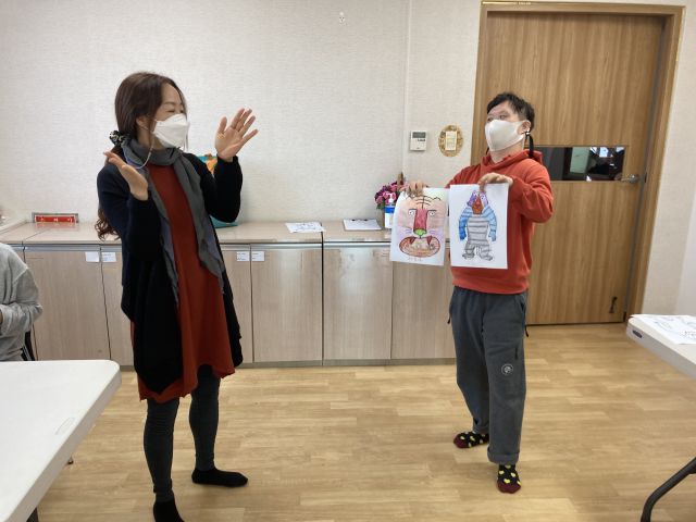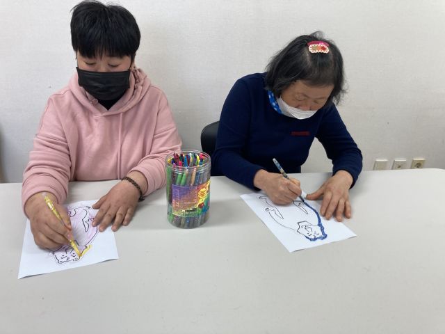 금일 여가활동 시간에는 '해와 달이 된 오누이' 동화구연을 감상하고 오자미를 떡이라고 생각해 바구니에 던져보았습니다. 다양한 색깔의 호랑이로 꾸미고 호랑이 입 안에 알록달록 여러가지 떡을 그려보며 즐겁게 활동하였습니다.