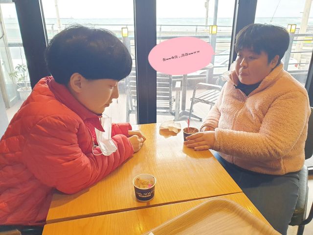 거센파도를 보며 먹는 시원한 아이스크림이란~~~달콤달콤. .