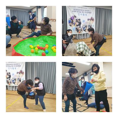 줄사다리 안에 불규칙하게 있는 공을 깔대기에 주워 담고 김장대야에 던지는 활동 진행하였습니다.