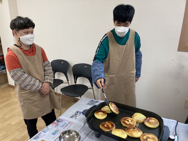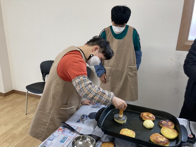 금일 체험활동으로 실내에서 호떡을 만들어 보았습니다. 뒤집어보고 눌러보고.. 참여자들이 직접 만든 호떡으로 센터 이용인들과 함께 간식으로 맛있게 먹을 수 있었습니다~