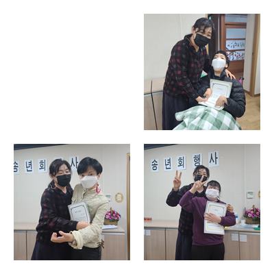 소그룹으로 진행된 점심식사, 이용인 상장, 생일파티, 인터뷰 영상으로 행사 준비하였고