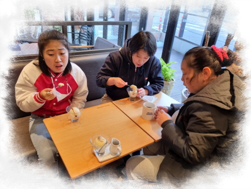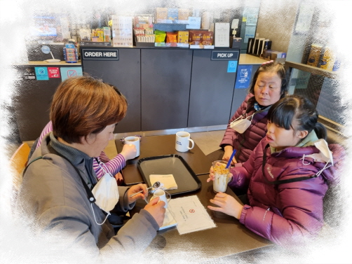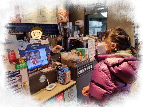 체험활동으로 커피숍에서 자신의 마시고 싶은 메뉴로