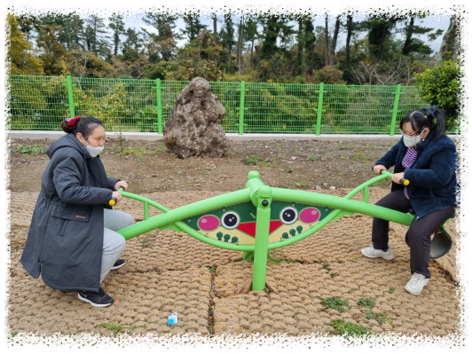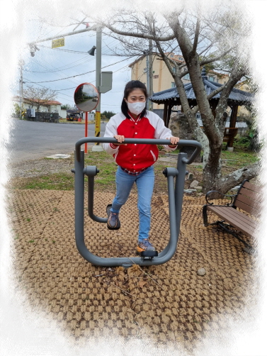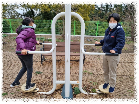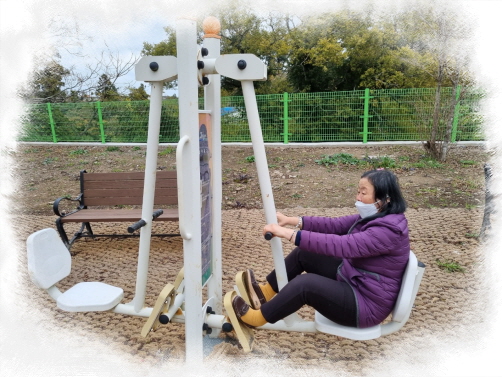 차를 마시면서 공원에서 운동하고 싶다고 하여 운동기구가 있는 곳에서