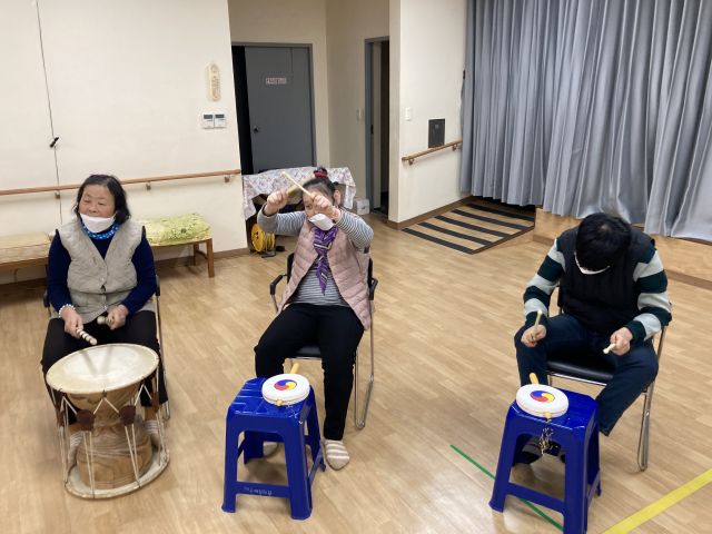 금일 전통놀이활동 시간은 강사님의 개인적인 사정으로 자체로 진행하였습니다. 이전 활동 때 배웠던 한삼 춤을 춰보고 다양한 전통민요를 떠올려보며 소고, 장구놀이를 해보았습니다. 마무리로 투호놀이를 하고 서로 박수를 치며 즐거운 활동시간 되었습니다~