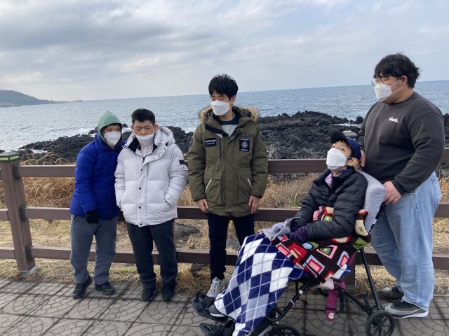 금일 체험활동으로 용담해안도로 드라이브 다녀왔습니다. 멋쟁이 이용인들과 시원한 바다를 배경으로 사진 찍어보았습니다.