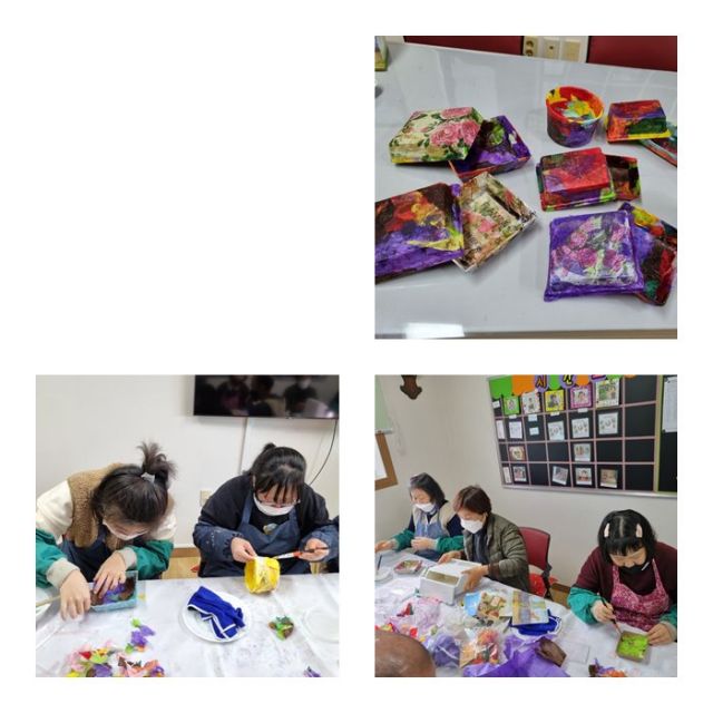 자투리한지와 냅킨등을 활용하여 다용도함 만들기를 하였습니다.