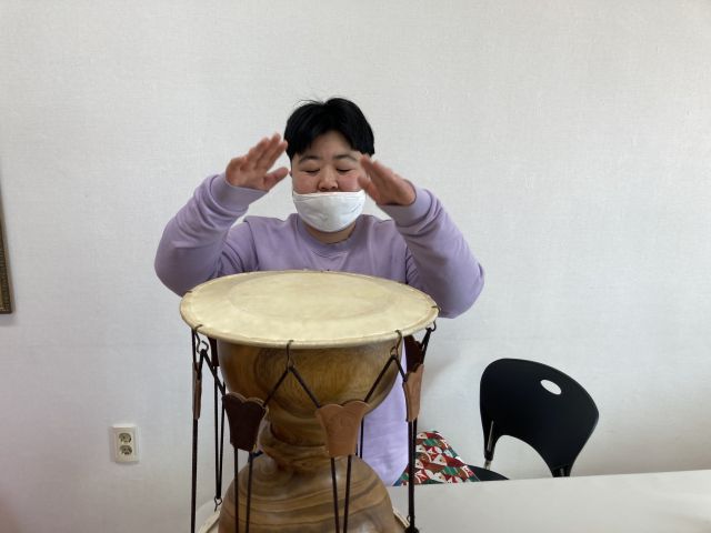 금일 오감체험활동으로 비닐, 신문지, 장구, 소고, 공, 오션드럼 등 흔들어보며 소리를 기억하고 맞춰보며 즐겁게 활동하였습니다.