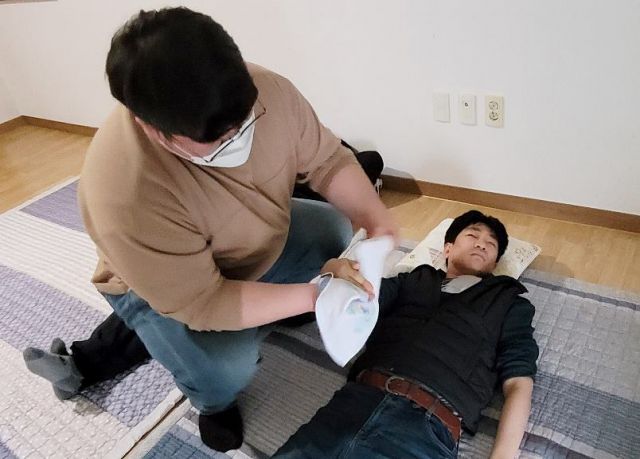 보습크림으로 얼굴과 손, 피부보습을 유지할 수 있도록 하였으며 손톱위생관리, 네일아트 실시하였습니다