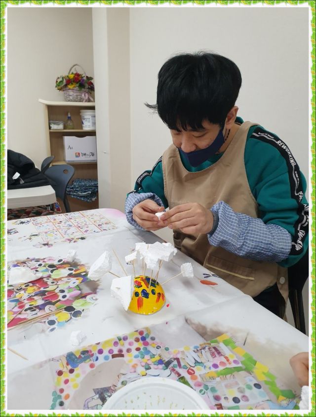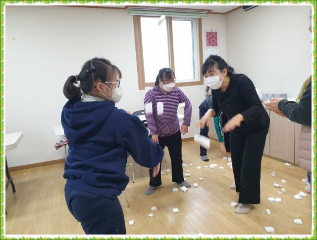 스트로폼 격파, 손으로 문질러 촉감 느끼기, 공 주고받기, 색칠해서 꾸미기 . .스티로폼을 이용한 다양한 활동 진행하였습니다