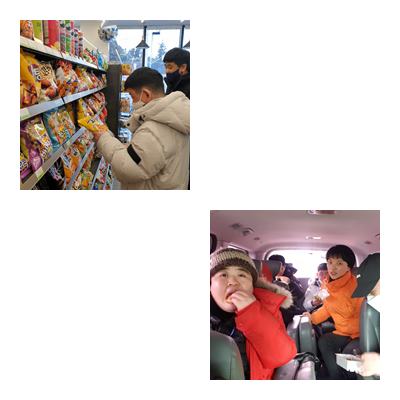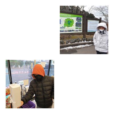 자연체험활동(B반)- 거친오름을 가는 중 노루생태공원에서 한 컷!, 돌아오는 길 삼양해수욕장 부근 씨유에 들려 간식을 구입했습니다.