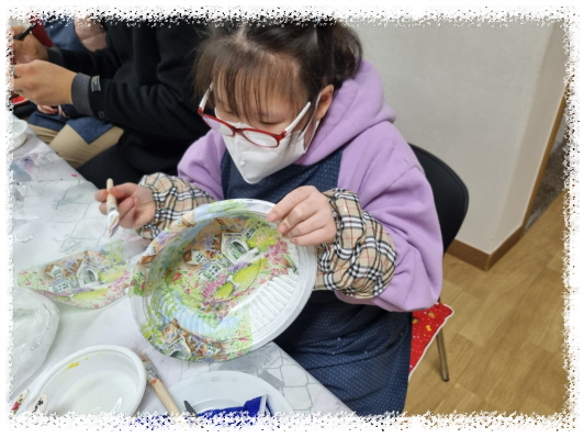 재활용아트활동으로 배달음식에 많이 사용하는 플라스틱용기와 냅킨을 이용하여