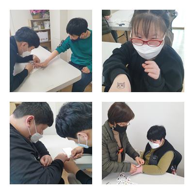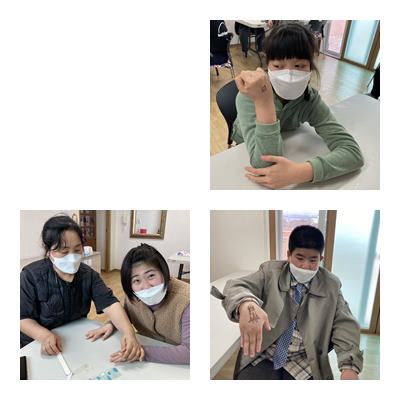 스킨테라피- 손마사지와 네일아트, 타투체험 진행하였습니다