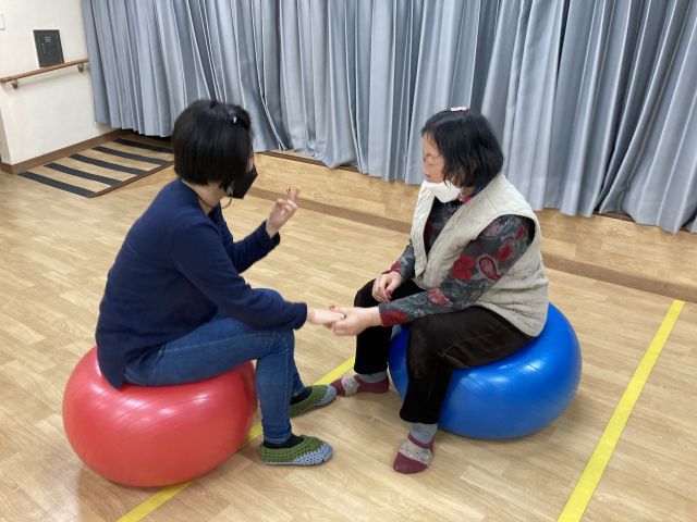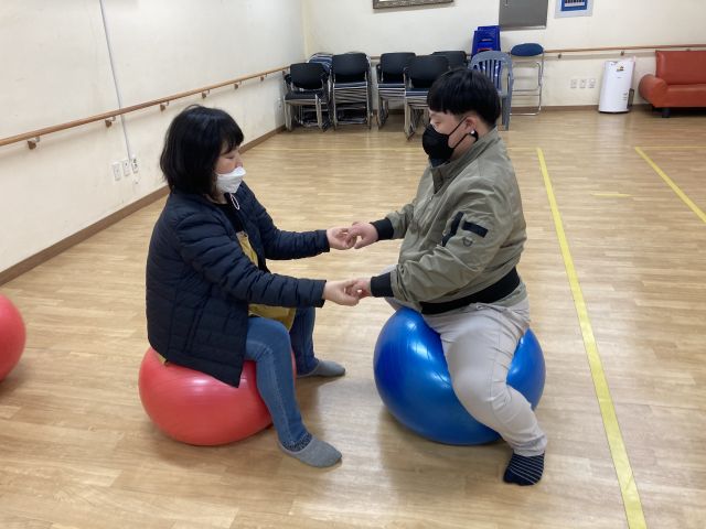 금일 인지활동 시간에는 손과 발을 이용하여 짐볼, 공을 이용한 활동을 해보았습니다.