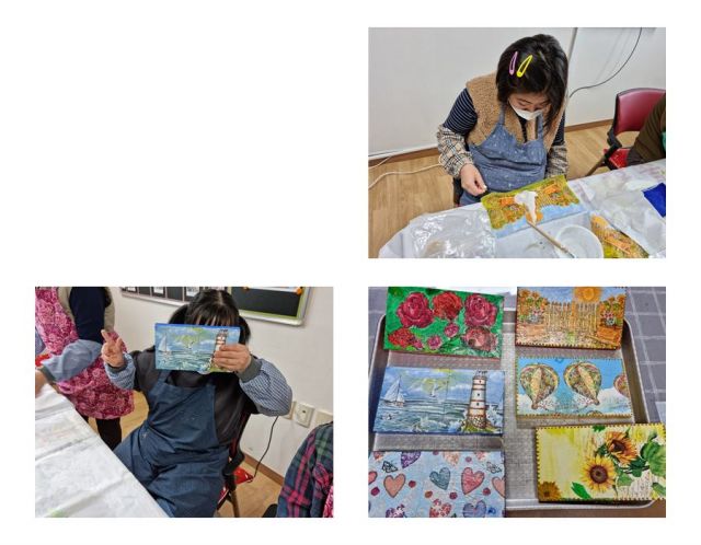 재활용아트활동으로 폐선반을 활용한 액자만들기를 하였습니다.