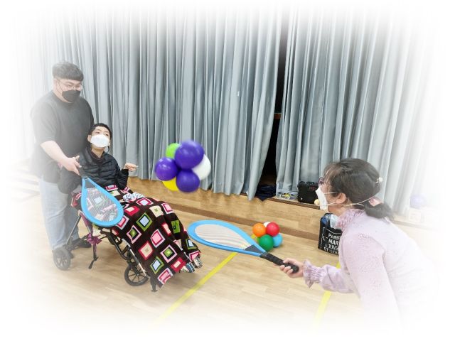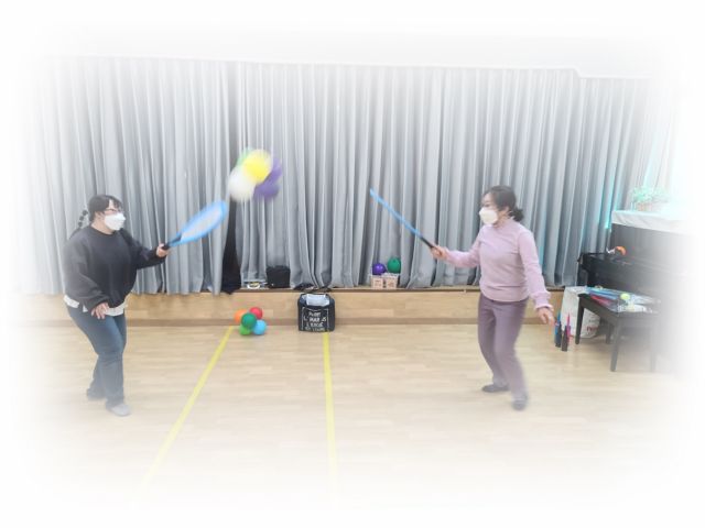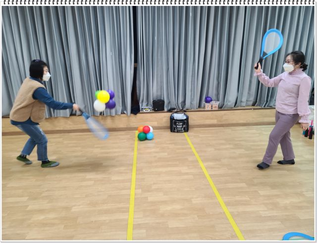 스트레칭을 하고 풍선배드민턴을 하였습니다.