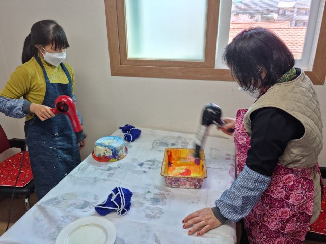 재활용아트시간에 가정에서 수거한 일회용 용기를 활용한 수납함을 만들었습니다.