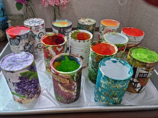 공동모금지원사업인 재활용아트활동으로 깡통을 수거하여 밑작업으로 젯소를 바르고 건조 후