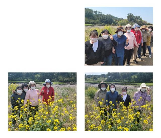 체험활동으로 서우병 해변 근처에서 유채꽃 구경을 하였습니다 .