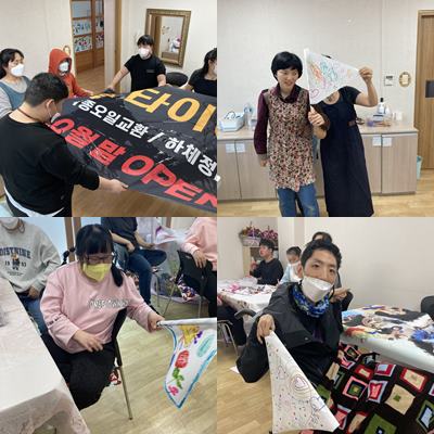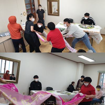 심리운동, 현수막천을 활용한 퍼포먼스 활동 진행하였습니다.