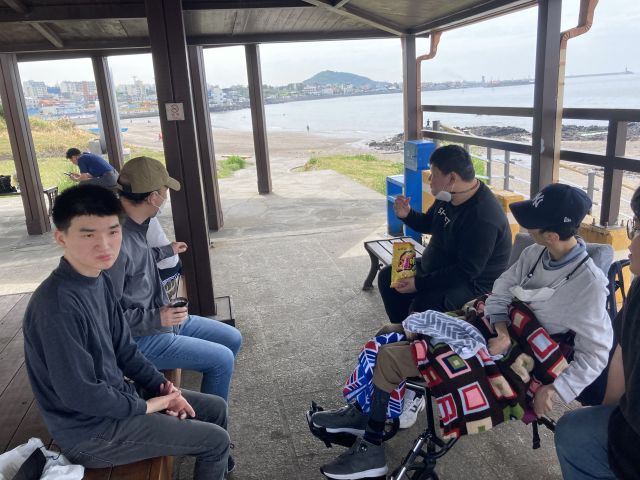 금일 무더운 날씨에 삼양해수욕장 그늘이 있는 근처 정자에 앉아 시원한 음료와 먹고 싶은 간식 먹으며 바다를 구경하였습니다.