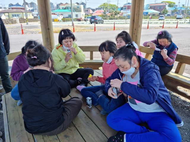 체험활동으로 조천해안도로 올레길 산책하고 바다풍경을 구경하고 사진을 찍었습니다.