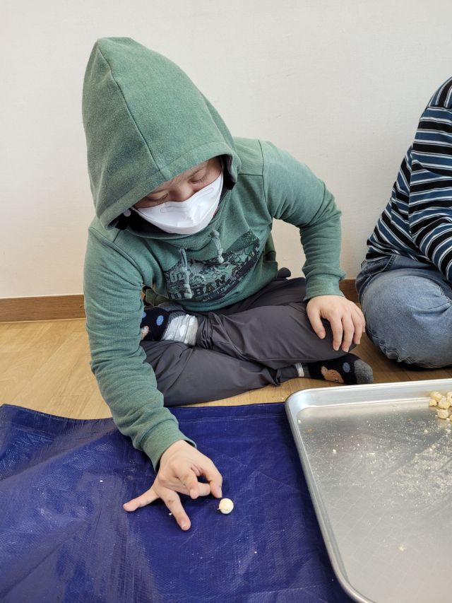 금일 오감체험활동으로 전통과자를 이용하여 알까기, 던지기, 쟁반 흔들기 등 다양한 활동하였습니다.