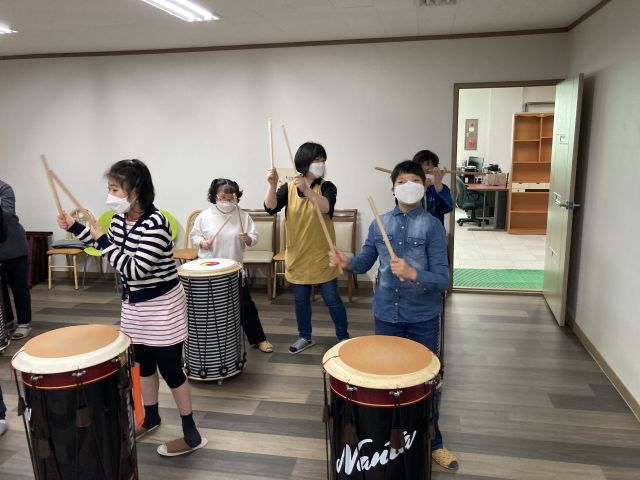 난타활동으로 다양한 트롯음악과 다양한 리듬과 장단으로 난타연주하였습니다.