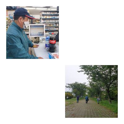 자연체험활동, 경찰수련원 인근 야영장 산책 후 마트에서 센터 이용인과 함께 마실 음료 구입하였습니다