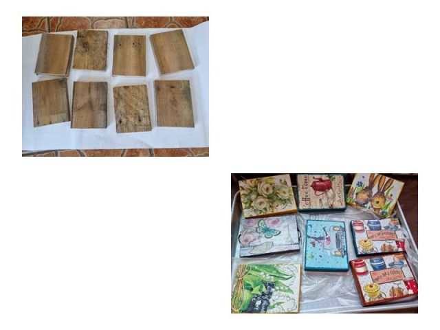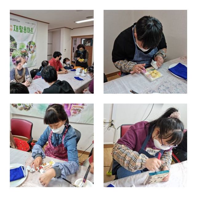 재활용아트시간에 폐빠렛트와 젯소, 냅킨, 자투리 한지를 이용하여 냄비받침대를 만들었습니다.