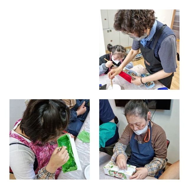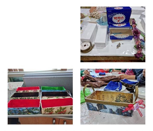 재활용아트시간에 박카스 상자 등을 활용하여 사각바구니를 만들었습니다.