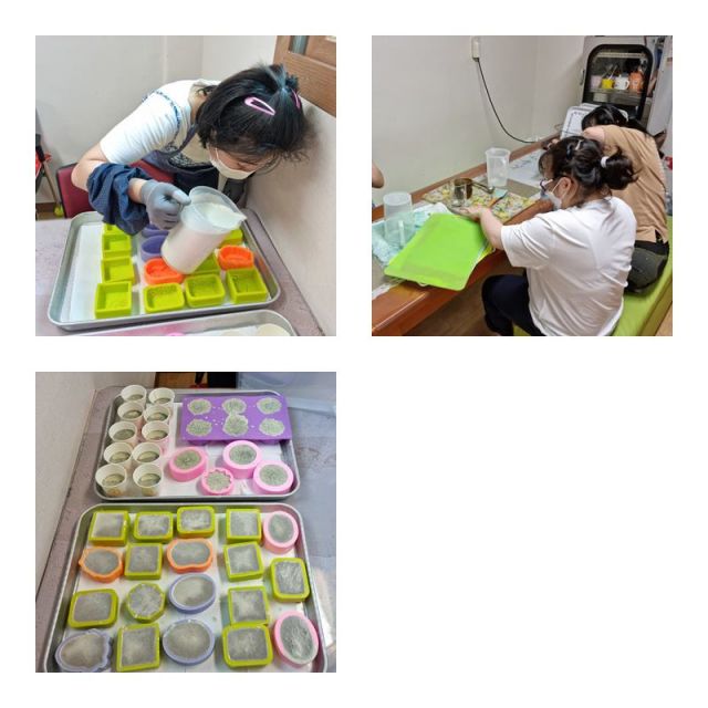생태환경활동으로 em발효액과 천연오일, 어성초 가루를 이용하여 em비누와원두찌꺼기와 베이킹파우더 등을 활용하여