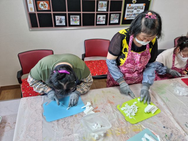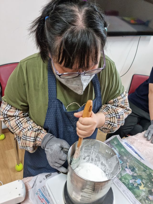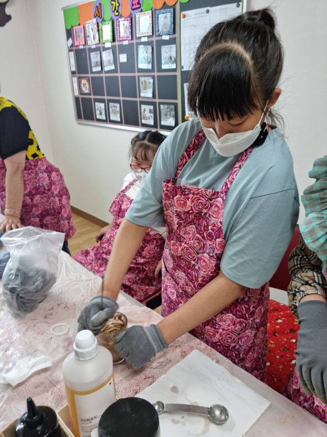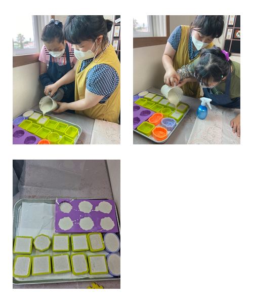 생태환경활동으로 em발효액과 어성초가루, 천연오일등 활용하여 비누 만들기를 하였습니다.