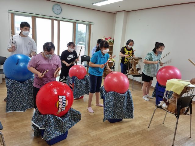 금일 '난타활동-짐볼을 이용한 난타'는 원내에서 진행하였습니다.