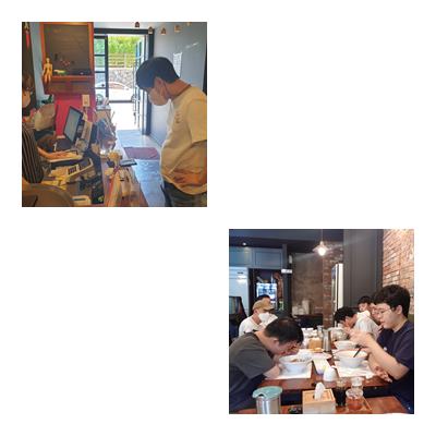 외부식당 점심식사 하며 이재명씨 생일파티 진행하였습니다