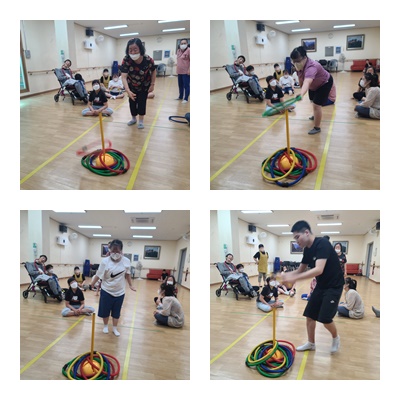 링을 이용한 스트레칭으로 몸풀기 운동을 하고