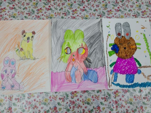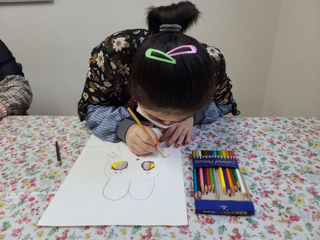 금일 재능키움-자유그림그리기활동으로 '강아지, 토끼' 그림을 그렸습니다.