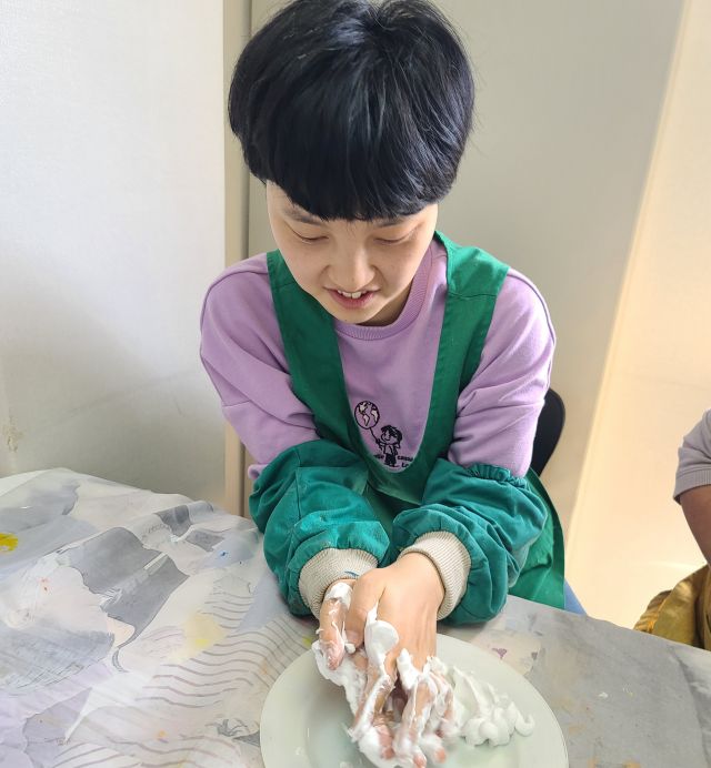 금일 오감체험활동 쉐이빙폼을 이용한 활동 하였습니다.