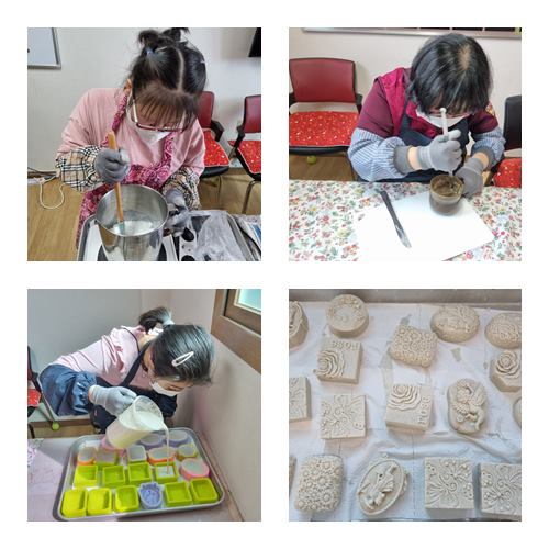 생태환경활동으로 em발효액과 천연재료를 활용하여 세안비누를 만들었습니다.
