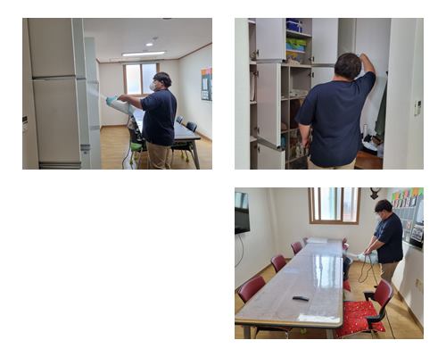 센터 내 교실, 화장실, 승강기, 사무실 등 소독을 하였습니다.