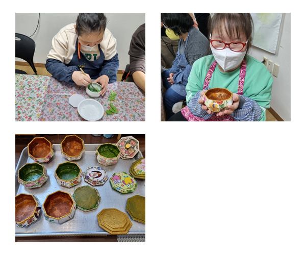 한지와 냅킨으로 미니항아리를 만들었습니다.
