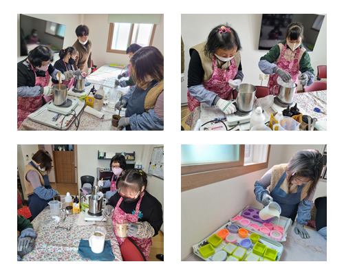 생태환경활동으로 em과 어성초가루, 천연오일등을 활용하여 천연비누를 만들었습니다.