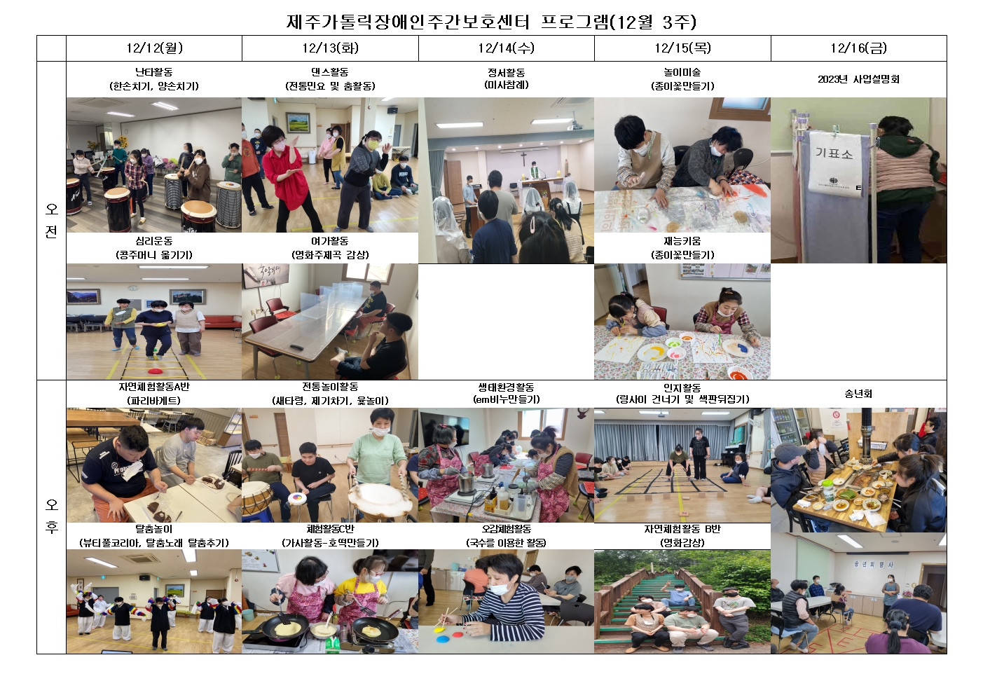 • 제목 제주가톨릭장애인주간보호센터 주간일정안내