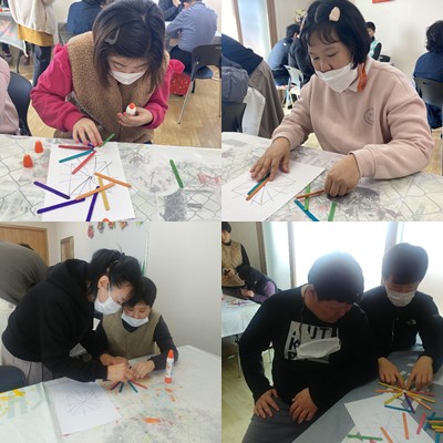 창의미술- 아이스크림 막대를 이용한 패널 공작 놀이 진행하였습니다.