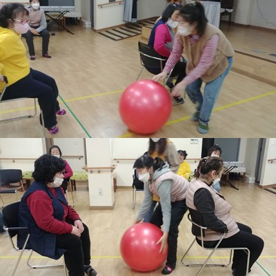 생활체육 의자에서 하는 전신운동으로 진행하였습니다.