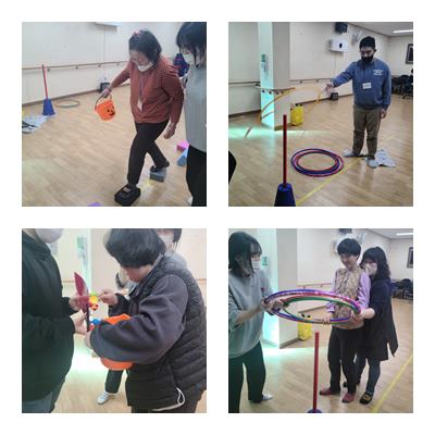 심리운동으로 신문지, 훌라후프를 활용한 활동을 하였습니다.